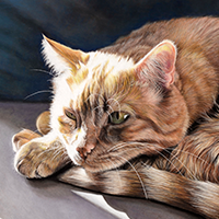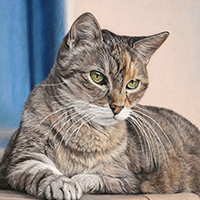 Après avoir vu les dessins aux pastels de Cécile, j'ai su que j'allais lui demander de réaliser le portrait de ma chatte adorée, Mistinguette. Cécile a été à l'écoute de mon souhait en terme de style et de couleurs et nous avons finalisé ensemble l'avant-projet à partir duquel Cécile a réalisé le portrait final, aux pastels. Le résultat était au delà de mes espérances. [...]