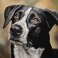 Je viens de recevoir mon tableau pour mon chien, le détail est bluffant...Cécile a su parfaitement capturer son regard et sa douceur! merci encore, je ne me lasse pas de regarder le portrait !